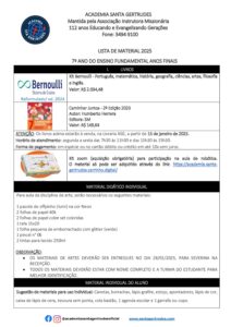 LISTA DE MATERIAL DIDÁTICO 7 ANO – 2025