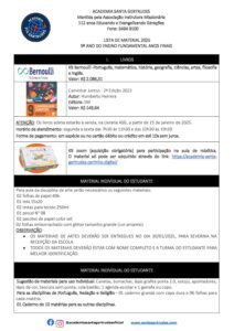 LISTA DE MATERIAL DIDÁTICO 9 ANO – 2025