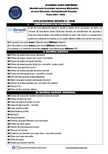 LISTA DE MATERIAL INFANTIL II 2025